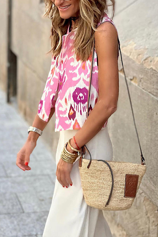 Apricot Sleeveless Buttoned Ribbed Wide Leg Jumpsuit with Pockets