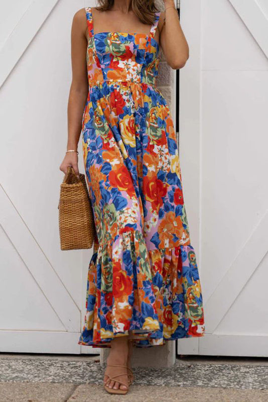 Ibiza Fashion Print Loose V Neck Long Sleeve Long Dress