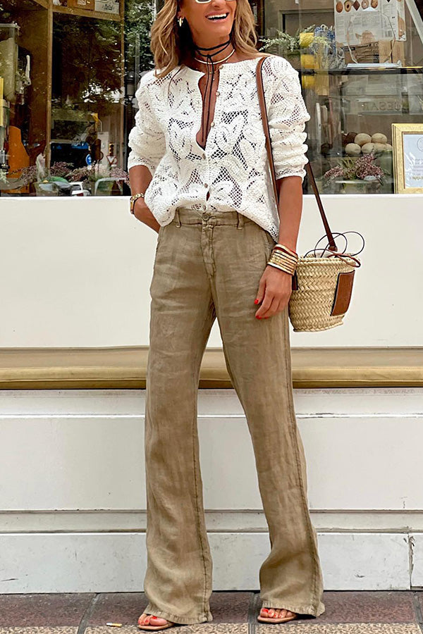 Bohemian crochet lace round neck long sleeve blouse