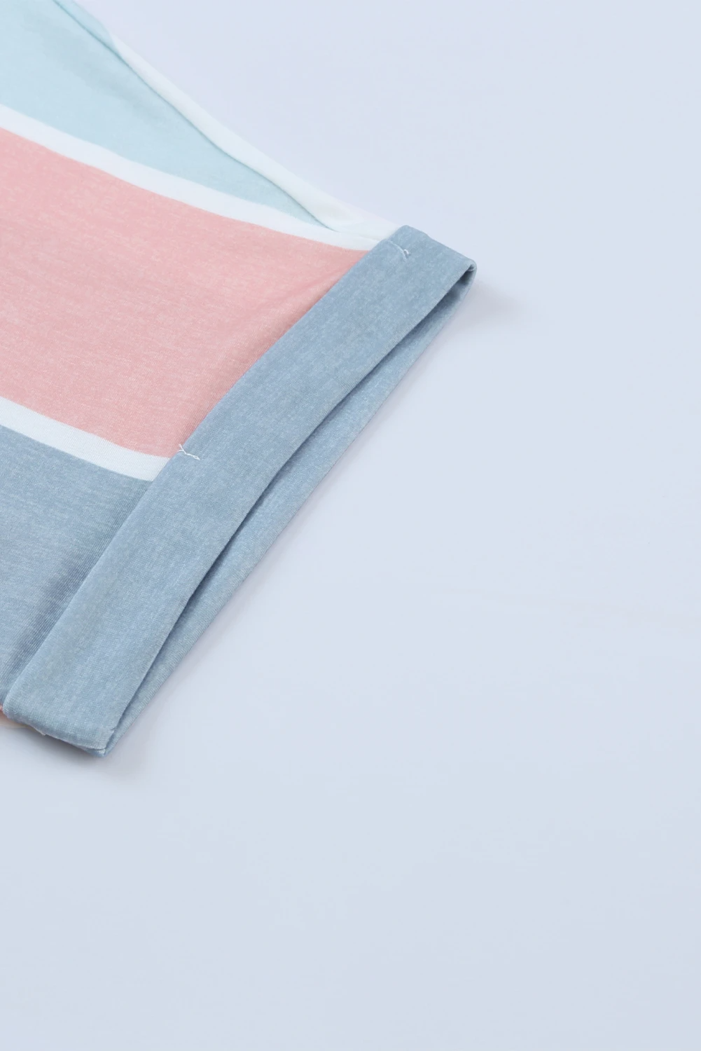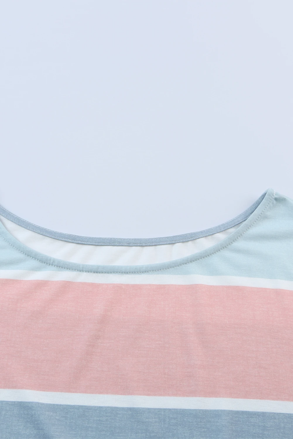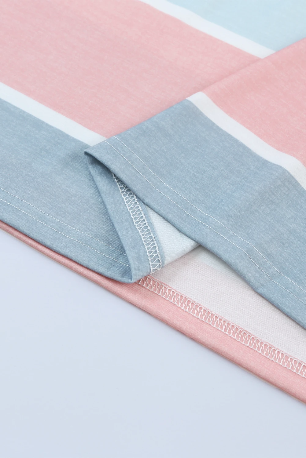 Multicolor Striped Color Block Loose Fit Half Sleeve Maxi Dress