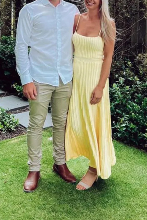 Women's Tube Top Slim High Waist Sling Knitted Dress Seaside Vacation Pleated Long Skirt